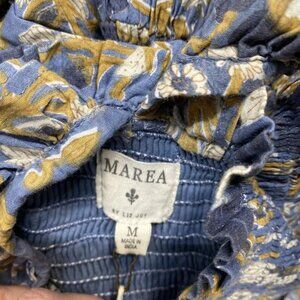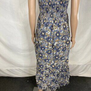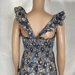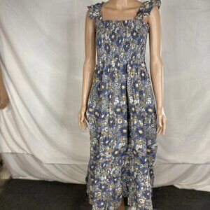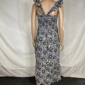 Marea Women’s Sasco Ruffle Shoulder Sleeveless Smocked Midi Dress – Blue Floral – Size M