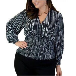 NEW Maree Pour Toi Womens Plus Size Black White Smocked Polka Dot Blouse Top