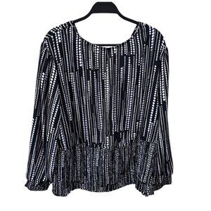 Maree Pour Toi Plus Size 26 Black White Smocked Polka Dot Blouse Top NWT