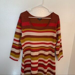 Great condition, new without tags. Maree Pour Toi. Striped Fit & Flare Midi Sweater Dress In Rust. Colorful stripes make the most of fit-and-flare styling on this seasonal-staple sweater-dress, ensuring you'll be wearing it at every opportunity.
