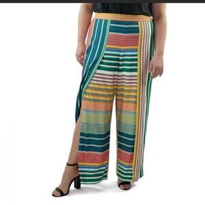 Maree Pour Toi Striped Pink and Green Slit Pants Sz 22