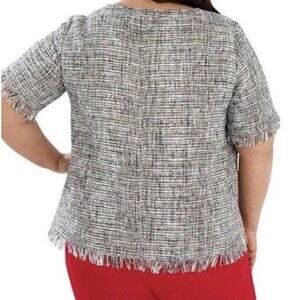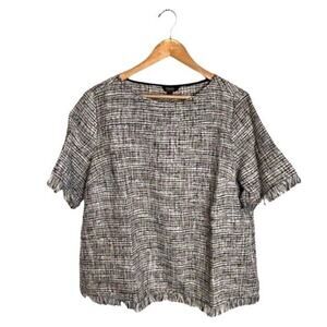 Maree Pour Toi Tweed Top Size 14 Demure Fringe Black White Gold Corporate NWT