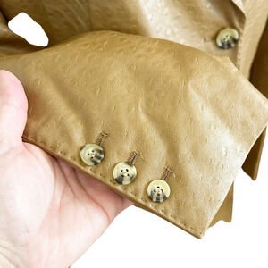 Crafted from Ostrich texture vegan leather, this double breasted jacket is cut for a "Boyfriend fit" silhouette.