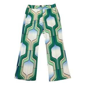 Marella By Max Mara Addirsi Trouser Women's US 10 Bright Green Crepe Geo Print