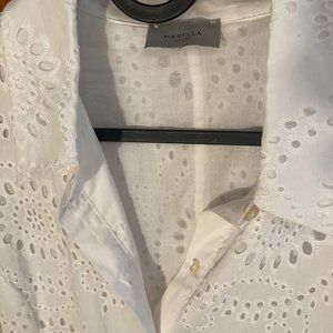 Marella Max Mara Long Sleeve White Eyelet Lace Shirt Dress EUC Sz. 6