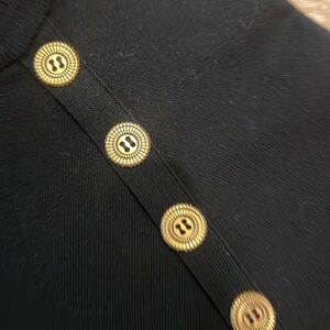 Gold-tone buttons at shoulders