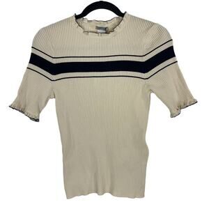 Marella Womens size Medium M sweater cream black Adamo short sleeve C4279