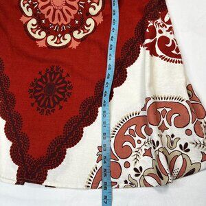 Marfinno Linen Medallion Maxi Dress Long Sleeve Cream Orange Medium