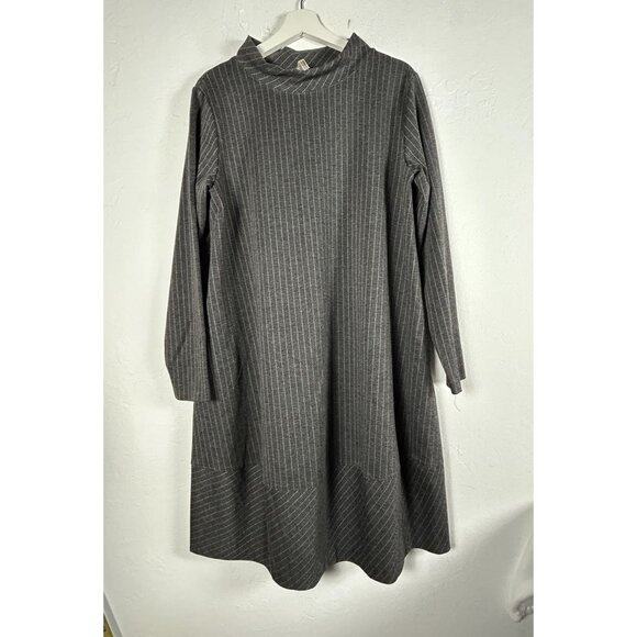 Margaret E Co. Womens Pinstripe Long-Sleeve Dress Size Large Black White Stretch