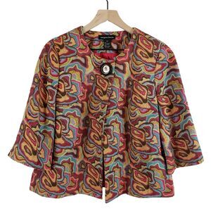 Margaret Frances Jacket Size 6 Blazer Multicolor Geometric 3/4 Sleeve Work Boxy