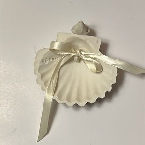 Collectors Retired Heart Angel clam shell cast 4 inches ivory cream white with ribbon detail.