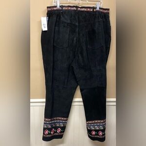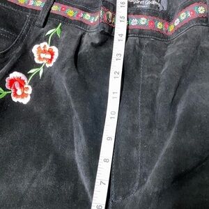 Margaret Godfrey Black Floral Embroidered Leather Pants Boho Size 22 NWT