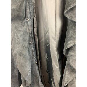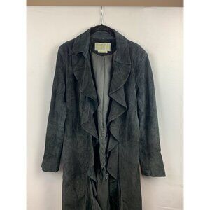 Margaret Godfrey Black Genuine Leather Ruffled Long Coat Size 6