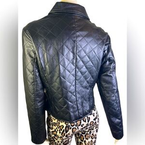This soft, easy fit, quilted leather jacket from Margaret Godfrey is in excellent pre-owned condition, featuring two front flap pockets with 4 button closure. Two buttons are a bit loose, but can easily be repaired! The medium measures as follows: