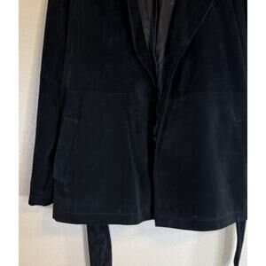 Margaret Godfrey Womens Large 100% Leather Suede Jacket Open Front Belted Black