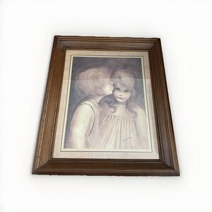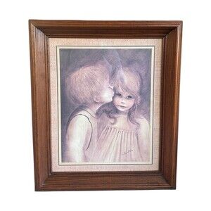 Condition: Preowned vintage, frame shows light wear consistent with age. Print itself in excellent condition.The print features a young boy kissing a girl with the characteristic "big eyes" style that Margaret Keane is famous for.