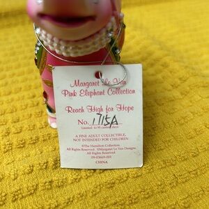 Margaret Le Van Pink Elephant. Reach High For Hope. Limited. Adorable pink elephant. Vibrant colors. Very detailed. Supporting breast cancer. The Hamilton Collection. Unfortunately it has a chip on the breast cancer ribbon on the ear. A little over 4 inches tall and 4 inches long. Review pics for damage. Price reduced to reflect chip.