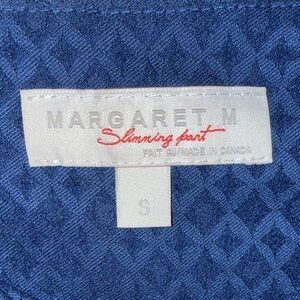 Sleek navy pencil skirt with textured pattern with slimming part. Ideal for office or casual wear. Timeless and versatile design with wide waist belt and back slit.