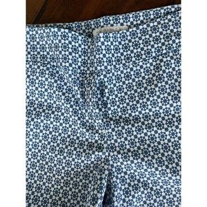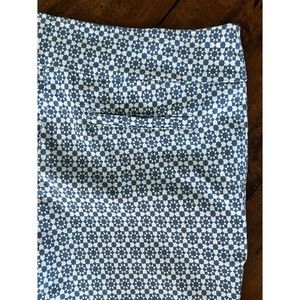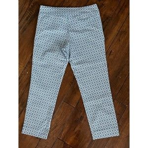 Margaret M Slimming Pant Crop Ankle Size L Blue White Stretch Diamond