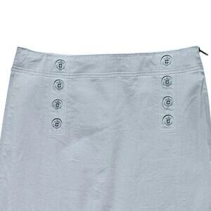 Margaret O’Leary Anchor Button Stretch Straight Skirt Raw Hem Sz M Blue Gray