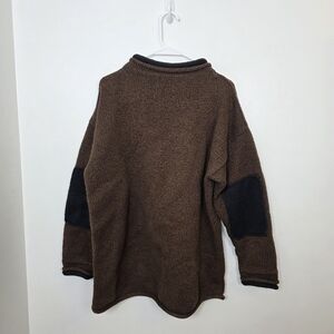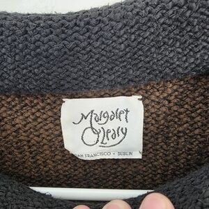 Margaret O'Leary Brown Black Elbow Patches Chunky Knit Thick Sweater Size Large