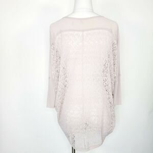 Margaret O'Leary Pullover Top S Lace Open Knit Back Dolman Sleeve Blush Pink Oversized Relaxed fit