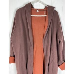 Margaret O'Leary Women's Brown Hip Length Hooded Open Front Cardigan Size Large