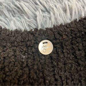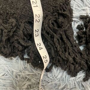 Margaret O'Leary Women's "Samantha" Merino Wool Cashmere Blend Knit Black Fringe Open Cardigan. This cozy cardigan features a soft, plush knit cashmere and Merino wool blend black fabric with a fringe hem, long sleeves, a Margaret O'Leary mother-of-pearl tag, and is longer in the front that tapers shorter to the back. It does not have a size tag, but seems to fit like a women's small. Very soft, cozy, and warm! In great condition!