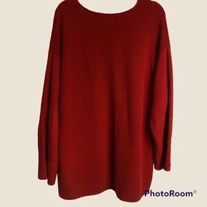 Margaret Winters 100% Cotton Knit Red Two Front Pocket Tunic Sweater 1X