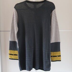 Margaret Winters Knit Patchwork Scoop Neck Cardigan Sweater Artsy Oversized XS