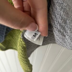 Stylish colorblock cardigan featuring a unique button-up design. Perfect for adding a pop of color to your wardrobe.