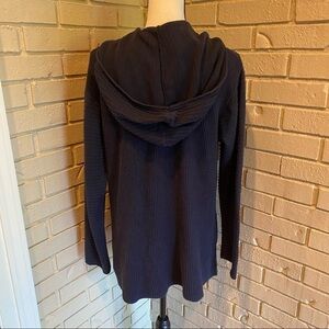 Margaret Winters Navy Tunic Cardigan Sweater Button Artsy Boho Hooded Medium