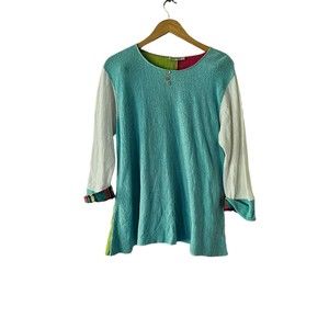 Margaret Winters Sweater Color Block Pockets Pullover Blue Pink Green Large