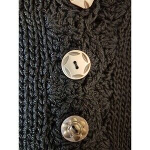 Margaret Wynn VTG Hand Loomed Sweater Boho Crochet Mother of Pearl Blk Sz O/S