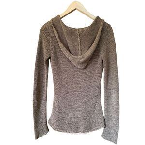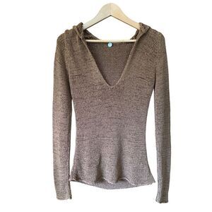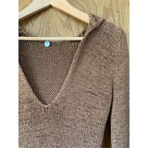Margaret O’Leary Hand Crocheted Knit V-neck Hooded Sweater Brown Size XS