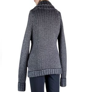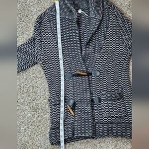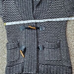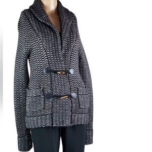 Margaret O'Leary Black & Gray Cardigan Sweater, zips & toggle buttons, front pockets, Size XS, Designer from San Francisco California, Thick & Warm