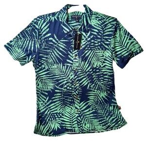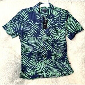 Margaritaville Casual Button Down Collared Men's Shirt Insignia Blue Palm - Size Small - New with Tags