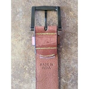 The Margaritaville Island Reserve Brown Leather Belt is a stylish dress belt for men, featuring carved vertical lines in the leather and embroidered accents. The belt is made of high-quality leather with brass hardware, measuring 42 inches in length and 1 1/2 inches in width. With its Island Reserve design, this belt brings a touch of sophistication to any outfit, making it a versatile accessory for any wardrobe.