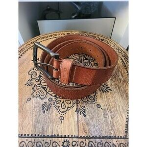 Margaritaville Island Reserve Brown Leather Belt 42" Carved Vertical Lines