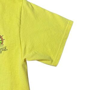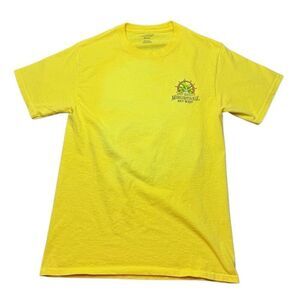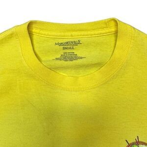 Margaritaville Key West Adult S Yellow T Shirt Crewneck Beach Party -Default pic is the back of the shirt I think it’s a part of the design, but the yellow is different shades on different parts of the shirt. Either way, it looks good. This shirt is in good condition with no rips, holes or major stains. It has a very small faint line on the front. It can be seen in the pictures.
