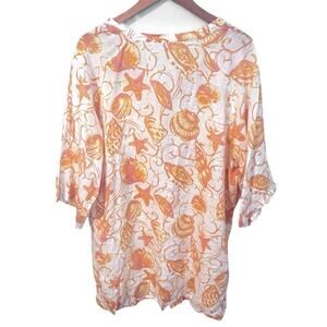 margaritaville swim coverup - summer beach tunic - orange pink ocean print - seashell starfish pattern - resort wear top - coastal vacation cover-up - lightweight linen blend - women’s beachwear - tropical seaside design - casual boho coverup
