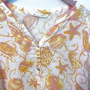 Margaritaville Summer Swim Coverup Tunic Top - Orange & Pink Ocean Print featuring shells and starfish in a gorgeous linen fabric.