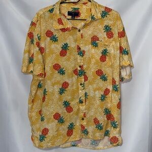 Margaritaville MENS size XL Yellow Red Pineapple Casual Button Down Shirt RAYON