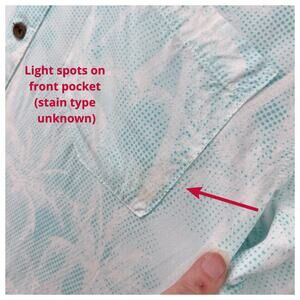 NOTE: A couple of small spots on pockets (stain type unknown); May be a random loose thread esp. at seams (common for this fabric)