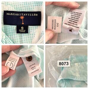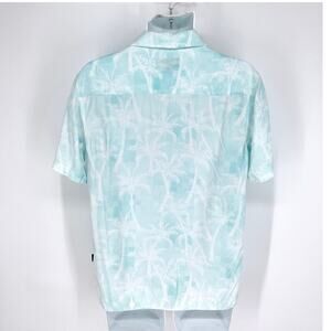 Margaritaville Mens Button Front Shirt Sz S Aqua Blue Palm Tree Polka Dots Aloha