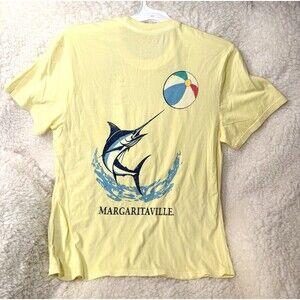 Margaritaville T-shirt Yellow Short Sleeve Marlin Fish Beach Vacation Tee Size M