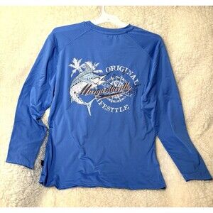 Margaritaville UPF 50 Water Resistant Moisture Wicking Long Sleeve Shirt Blue L