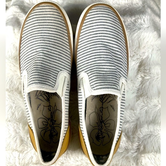 Margaritaville Women’s Size 6.5 Blue/White Striped Canvas Slip Ons