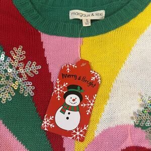 Margaux And Lexi Kids' Sequin Unicorn Holiday Sweater In Candy Stripes Size XL (16)