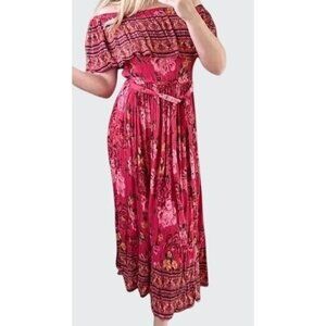 This bohemian-inspired maxi dress by Margaux Riviera is crafted from lightweight viscose, featuring a vibrant fuschia floral print. Its flowing silhouette and off-shoulder neckline evoke a timeless elegance, making it both comfortable and stylish. Designed for women, this 2X dress is perfect for warmer weather, with intricate patterns adding a touch of artistry to your wardrobe.
